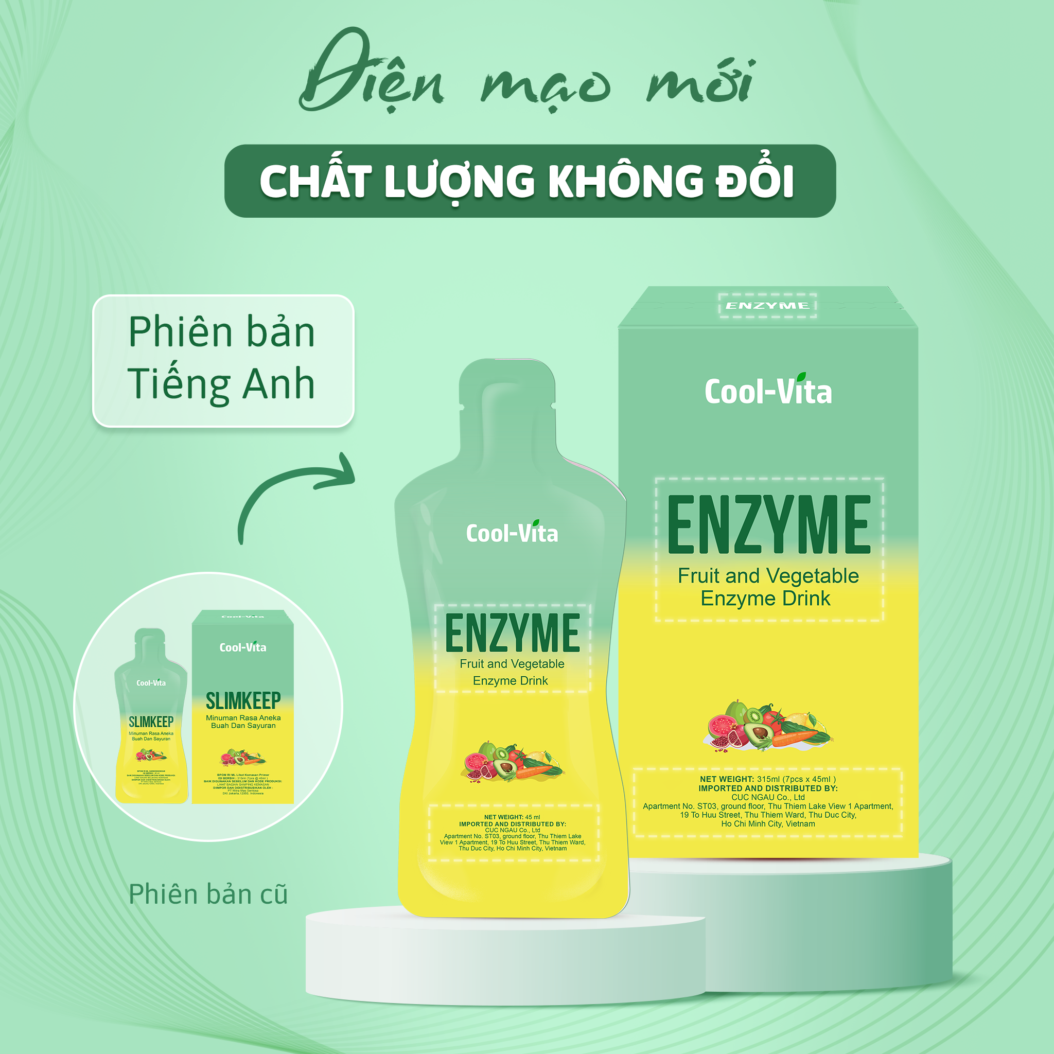 Nước Uống Bổ Sung Enzyme Hỗ Trợ Tiêu Hoá, Thanh Lọc Cơ Thể Cool-Vita (45 ml× 7 túi)/hộp Nước uống Enzyme Cool-Vita được chiết xuất từ các loại trái cây rau quả đã được chế