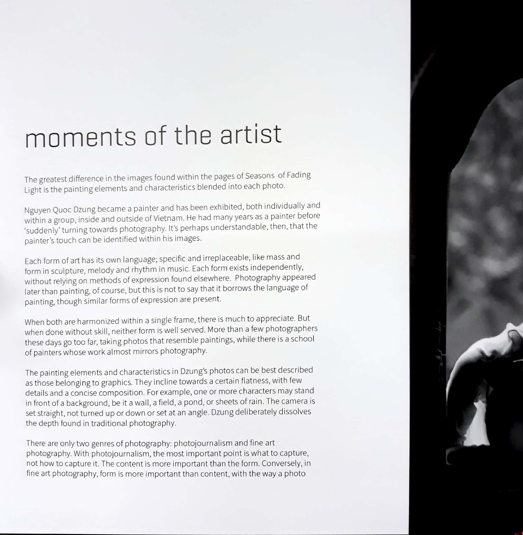 Cái khác lạ dễ nhận ra nhất ở cuốn sách ảnh Mùa Nắng Phai đó là chất hội họa bảng lảng trong từng tác phẩm.