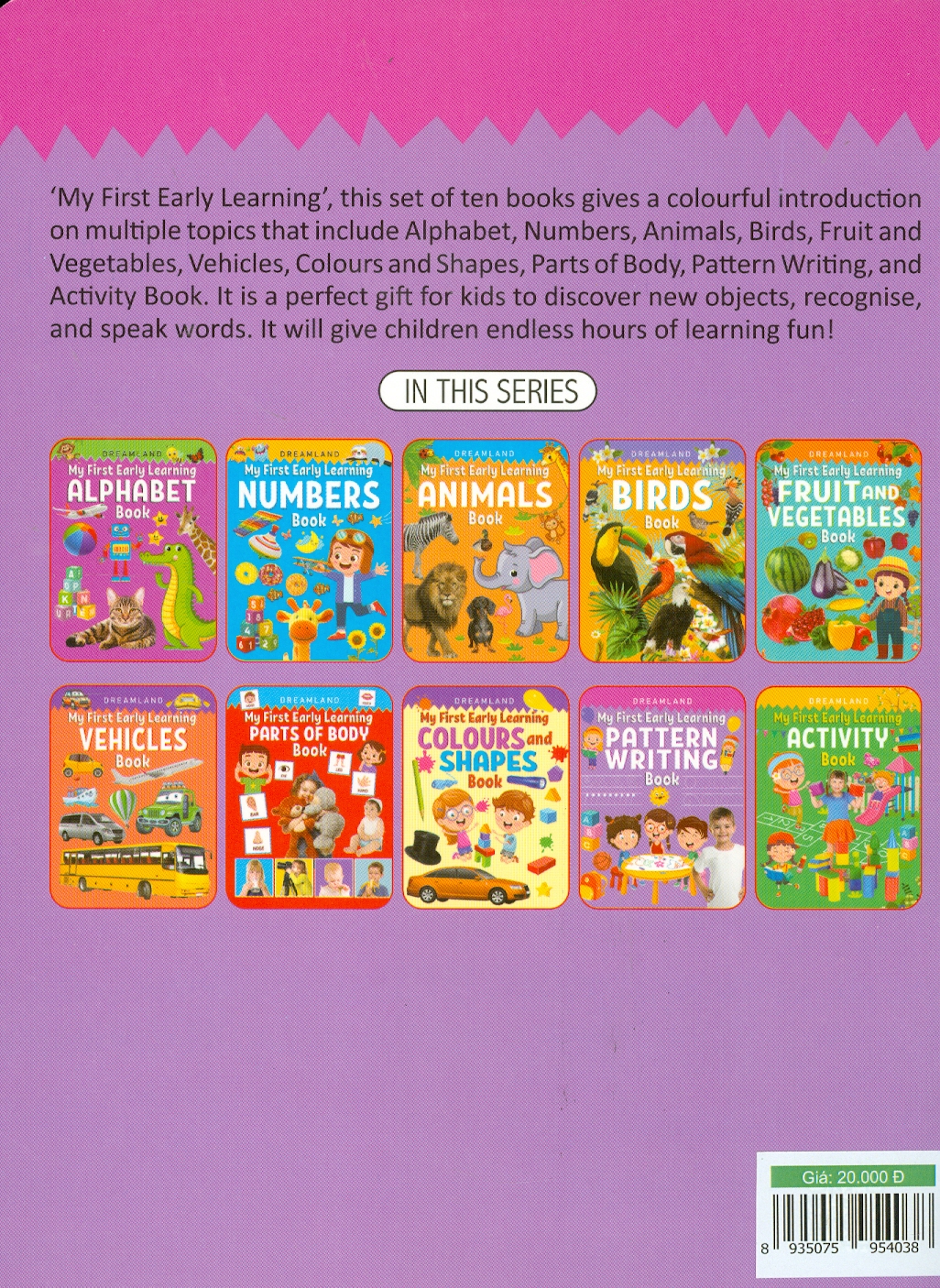 Mua tại Tiktok'My First Early Learning' gồm 10 cuốn sách:- Bảng chữ cái, Số, Động vật, Chim, Trái cây và Rau củ, Màu sắc và Hình dạng, Các bộ phận của Cơ thể, Viết theo Mẫu và Hoạt động. Bộ sách vui nhộn và mang tính giáo dục với những hình ảnh dễ thương sống động này là sự lựa chọn tốt nhất cho trẻ em.