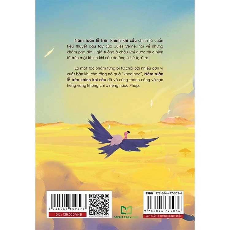 - Về tác phẩm Năm Tuần Lễ Trên Khinh Khí Cầu chính là cuốn tiểu thuyết đầu tay của nhà văn Jules Verne, tác giả của cuốn sách Hai Vạn Dặm Dưới Đáy Biển (Minh Long Book đã phát hành). Cuốn sách nói về những khám phá địa lí giả tưởng ở Châu Phi được thực hiện từ trên một khinh khí cầu do ông chế tạo ra. Là một tác phẩm từng bị từ chối bởi nhiều đơn vị xuất bản khi cho rằng nó quá "khoa học", Năm Tuần Lễ Trên Khinh Khí Cầu đã vô cùng thành công và tạo tiếng vang không chỉ riêng nước Pháp mà còn trên toàn thế giới bởi nội dung và lối kể chuyện sinh động, cuốn hút, đan xen cả những nghiên cứu hết sức kĩ càng và hấp dẫn, hứa hẹn sẽ lôi cuốn bạn từ những trang đầu tiên. Hãy cùng đồng hành với Jules Verne tham gia chuyến phiêu lưu kì thú và tuyệt vời!