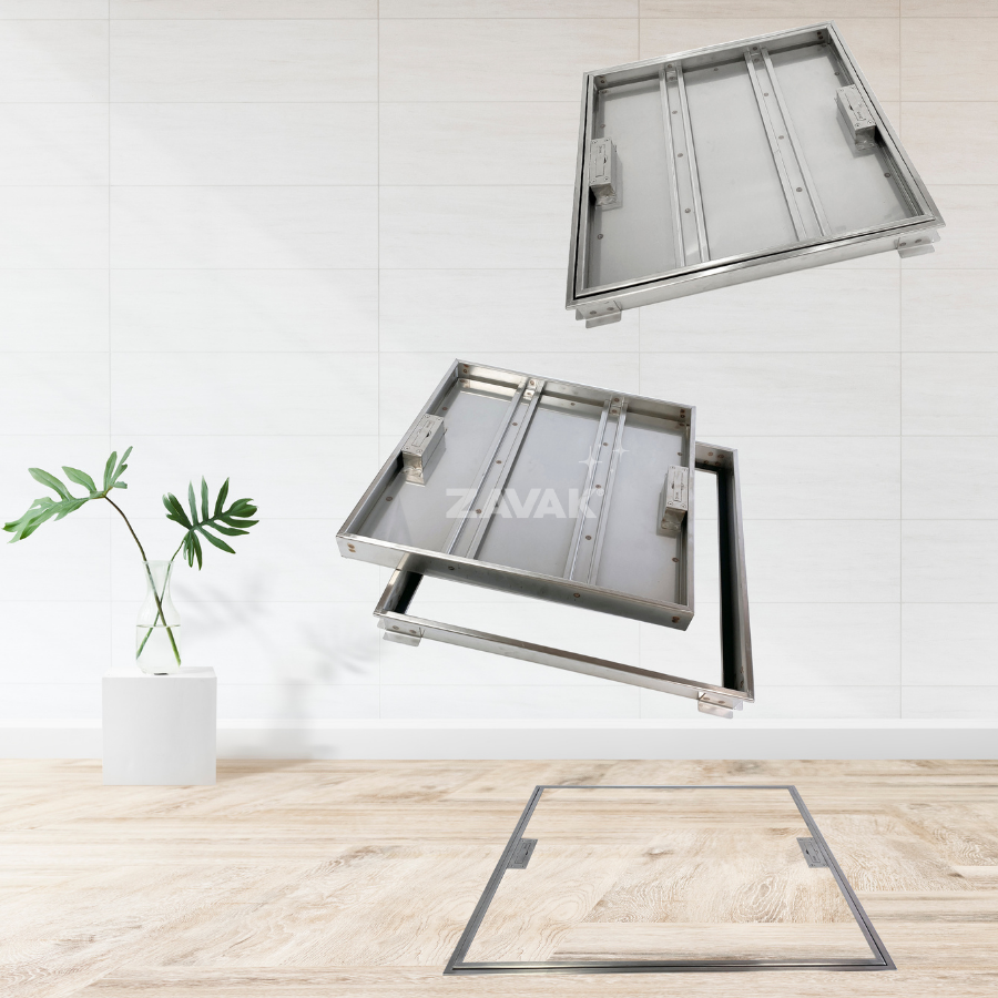 Tên sản phẩm: Nắp Bể Ngầm Trong Nhà 40x40cm Inox 304 ZAVAK MHIs-40 Nắp bể nước âm sàn, Nắp hố ga Inox 304
