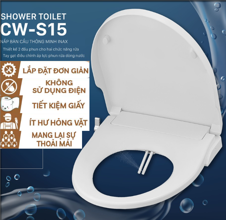 Thông số kỹ thuật: Tên sản phẩm: Nắp rửa cơ Mã sản phẩm: CW-S15VN Điều chỉnh nước: 2 tay vặn dùng cho rửa đại tiện và rửa phụ nữ Số lỗ phun: Đại tiện 3