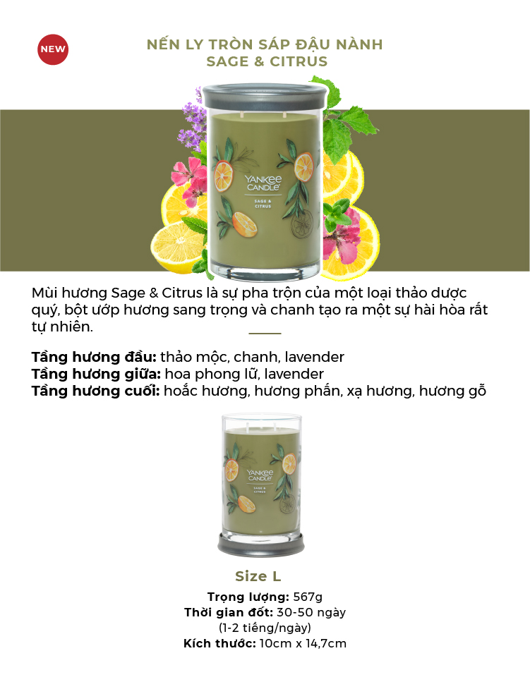 ✨Nến ly tròn sáp đậu nành Yankee Candle size L (567g) - Sage & Citrus