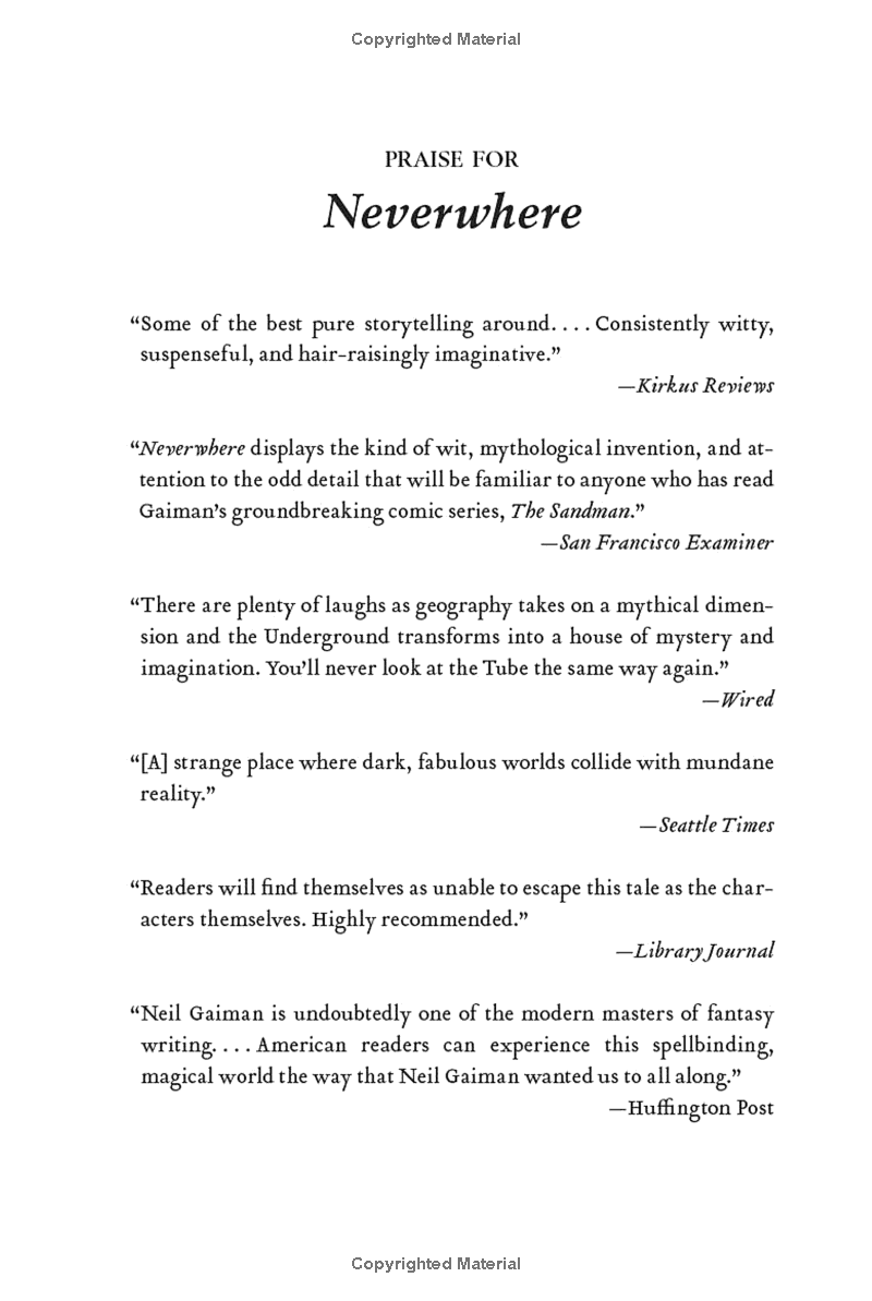 Neverwhere National Bestseller From #1 New York Times bestselling author Neil Gaiman, a novel of bold creativity and narrative genius that brings to life a world most people could never e...