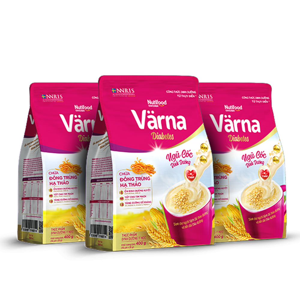 NGŨ CỐC DINH DƯỠNG VÄRNA DIABETES MỚI có chỉ số GI thấp với công thức đặc chế được kiểm chứng bởi VIỆN NGHIÊN CỨU DINH DƯỠNG NUTIFOOD THỤY ĐIỂN - NNRIS chứa ĐÔNG TRÙNG HẠ THẢO VÀ 9 VITAMIN KHOÁNG CHẤT thiết yếu giúp TĂNG CƯỜNG SỨC ĐỀ KHÁNG kết hợp cùng ISOMALTULOSE và CHẤT XƠ giúp ỔN ĐỊNH ĐƯỜNG HUYẾT HIỆU QUẢ.