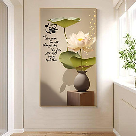 ranh treo tường tráng gương hoa sen và chữa Tâm - Đức - Nhẫn - Kích thước của tranh : Kích thước : 30x60cmx3 tấm - 40x80cmx3 tấm - 50x100cmx3 tấm - Chất liệu :