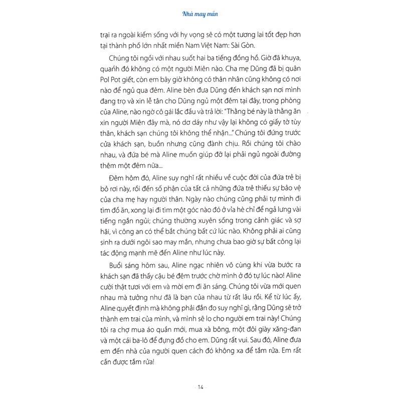 Câu chuyện bắt đầu khi cô vừa bước sang tuổi 20. Trong một chuyến du lịch vòng quanh thế giới, cô đã gặp một bé trai mồ côi đang cận kề cái chết tại một