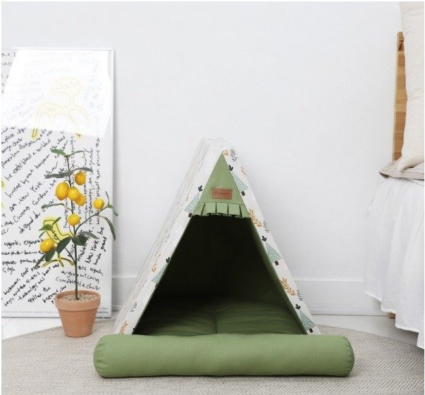 Lều ngủ cho thú cưng kèm khung gỗ & rèm và đệm nhồi bông ấm áp Kích thước: 65*45*75cm (phù hợp cho bé 10 kg trở xuống) tạo ra một không gian đủ rộng cho