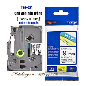 Nhãn in TZ2-221 Brother Nhãn in đa lớp sử dụng cho máy in nhãn Brother, tất cả trong 1, mực nằm bên trong, chống chịu dung môi, hóa chất, nước, dầu mỡ, nhiệt độ Mã
