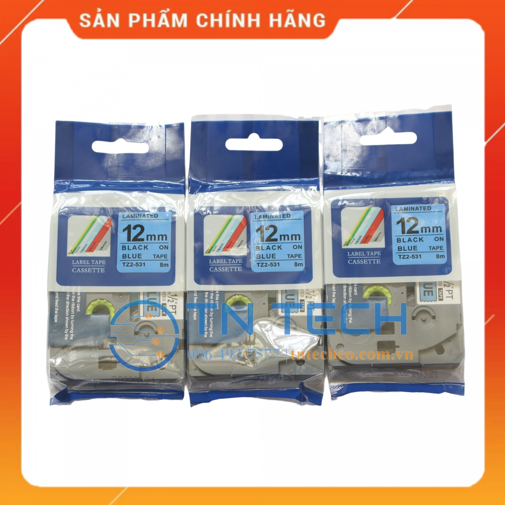 Nhãn in TZ2-531 Brother Nhãn in đa lớp sử dụng cho máy in nhãn Brother, tất cả trong 1, mực nằm bên trong, chống chịu dung môi, hóa chất, nước, dầu mỡ, nhiệt độ Mã