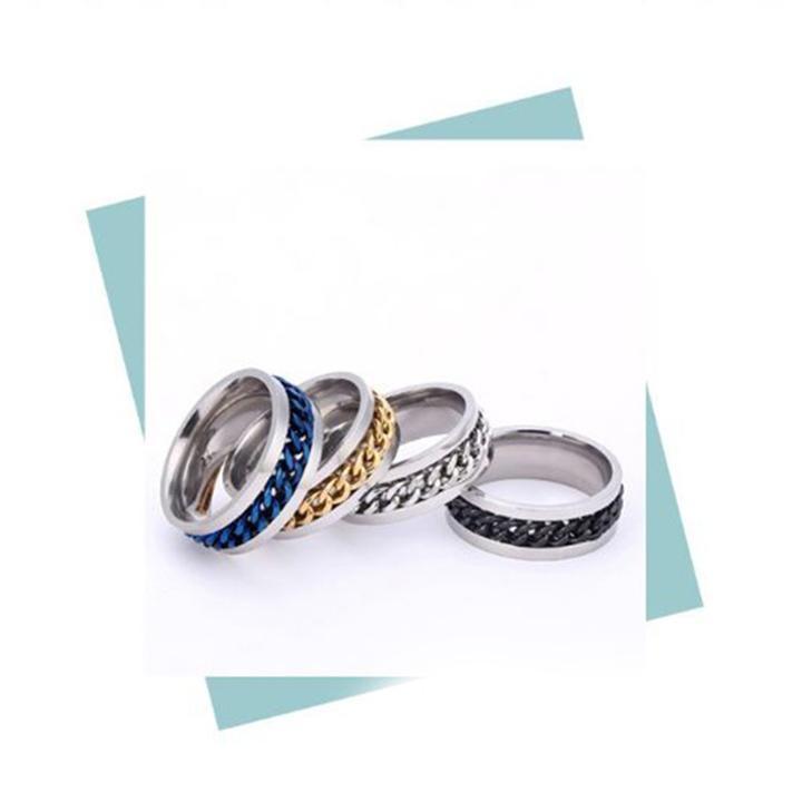✨Nhẫn inox phối xích xoay nam nữ nhiều màu cao cấp thời trang thép không gỉ trangsucpt khui bia