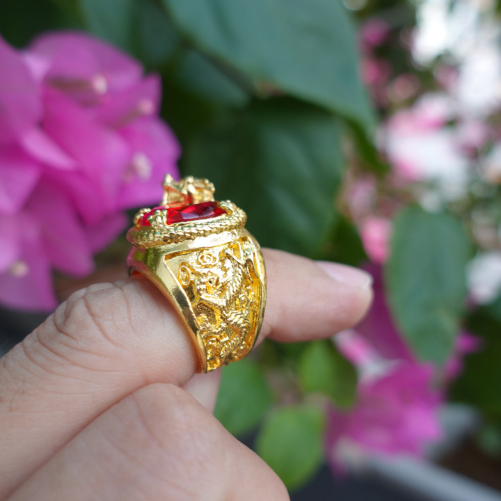 Nhẫn nam đẹp cao cấp thời trang titan thép không gỉ kiểu cham rồng trangsucpt đá đỏ màu trắng PTNNA249 Thông tin chi tiết: Chất liệu SP : titan cao cấp , không đen, không