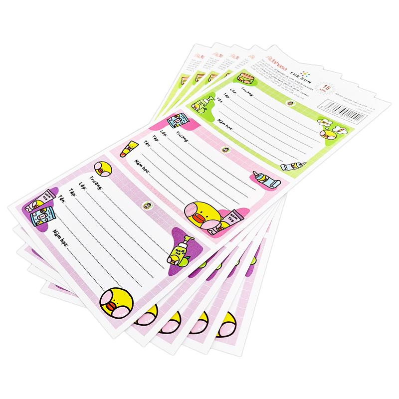 Nhãn vở dạng đề can tiện dụng, bạn chỉ cần bóc phần giấy đằng sau và dán vào sách vở là có thể sử dụng được.