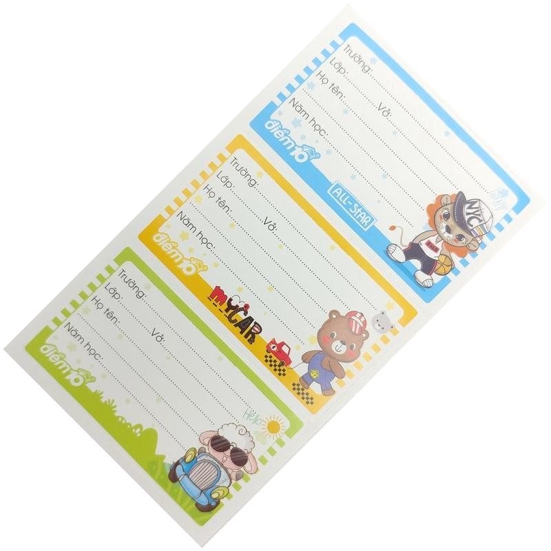 - Xấp 40 Nhãn Vở Thiên Long TP-NBl03 dùng để ghi họ tên đính ở tập sách vở giúp các em phân biệt được các môn học khác nhau, tạo hứng thú khi mở sách