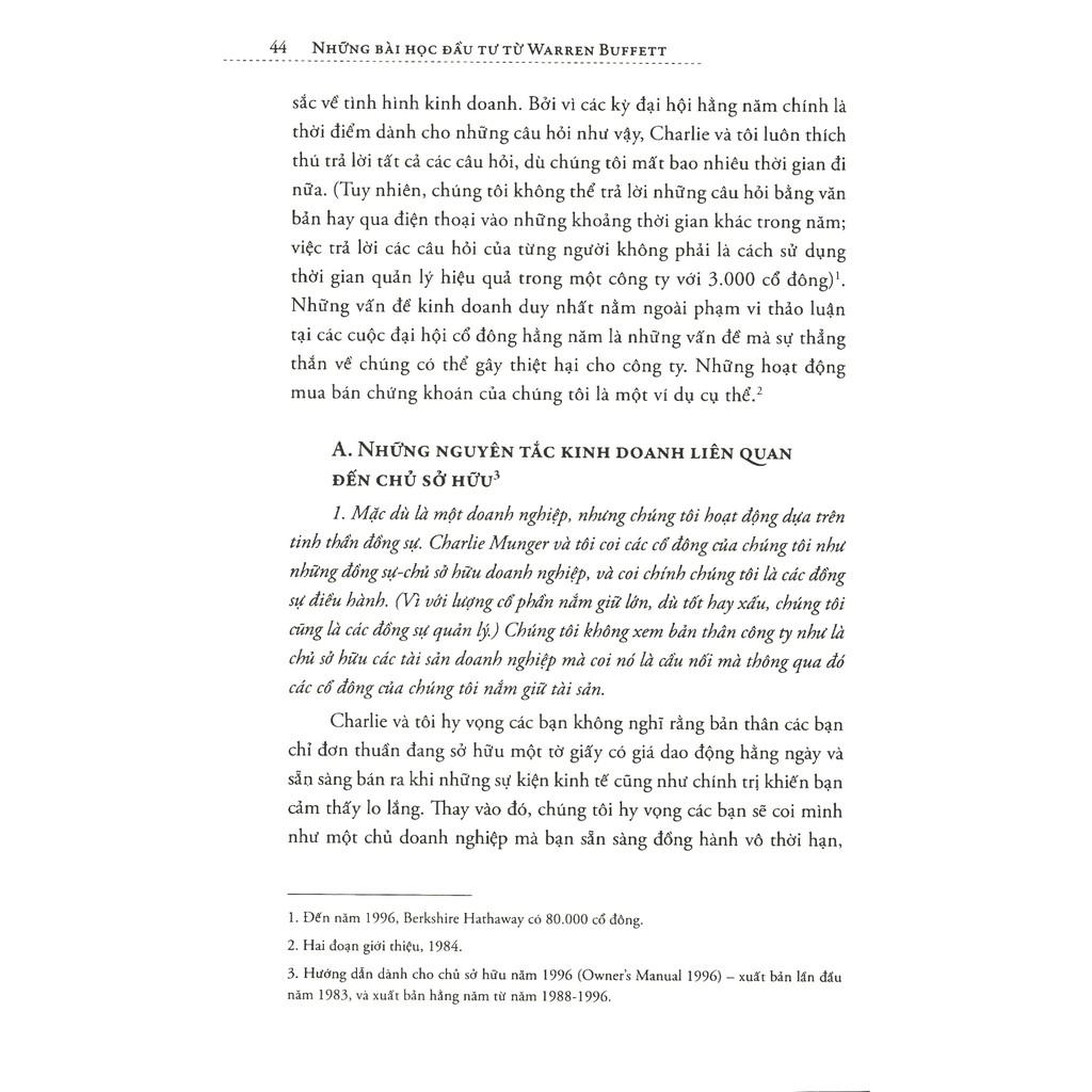Những nguyên tắc và triết lý đầu tư của Buffett gần như đi ngược lại với lý thuyết tài chính hiện đại được giảng dạy tại các trường đại học, chúng bao gồm: