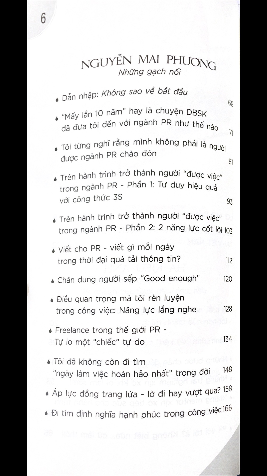 Cuốn sách là sự chia sẻ của 3 cô gái hoạt động trong ngành PR ở 3 giai đoạn khác nhau của sự nghiệp: một cô gái trẻ mới vào ngành; một người ở những gạch nối của sự nghiệp KHI chuẩn bị bước qua “5 năm lần thứ nhất” và một người ở vị trí quản lý, điều hành doanh nghiệp với 18 năm kinh nghiệm.