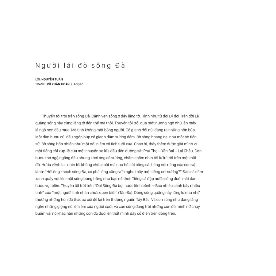 Cuốn sách này được nhóm biên soạn thực hiện với niềm mong tái hiện hành trình dài rộng ấy. Đó là hành trình mà cảnh sắc Việt đã bước vào văn chương để rồi tiếp tục trở lại trước mắt ta với những bức tranh. Trong hành trình lưu giữ và ghi lại ấy là sự tiếp nối của quan sát, hình dung, của tài năng sáng tạo và lòng yêu mến. Cuốn sách này nói với người đọc, người xem rằng mỗi địa danh luôn có nhiều hơn một đời sống cho chúng ta ngắm nhìn, khám phá và cũng có thật nhiều cách để những miền đất ta yêu mến được lưu giữ và nhớ về.