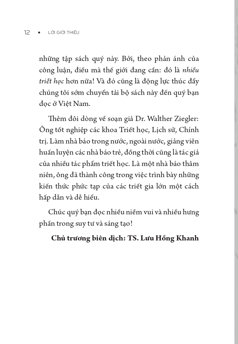 - Giới thiệu Những Nhà Tư Tưởng Lớn - Popper In 60 Minuten - Popper Trong 60 Phút Popper nêu ra lý tưởng về khoa học của “xã hội mở“: Mọi lý thuyết khoa học đều chỉ có giá trị hiệu lực cho đến khi nó bị phản bác bởi một ví dụ phản chứng hoặc bị thay thế bởi một lý thuyết chính xác hơn. Xã hội phải luôn luôn cởi mở đối với việc phê phán và đổi mới nhận thức của chúng ta Phương pháp thử và sai in dấu ấn lên sự tiến hóa. Từ muôn thuở, thực vật và động vật tối ưu hóa cơ may sống còn bằng những đột biến thất bại và thành công: Khoảng cách từ trùng a-míp đến Einstein chỉ là một bước. Triết học cho mọi người! Bộ sách Những nhà tư tưởng lớn lần đầu tiên trình bày sâu sắc công trình của các nhà triết học quan trọng nhất: Dễ hiểu, thú vị và rất thời sự.” – Martin Politowski “Tất cả đều được trình bày hết sức rành mạch: Phê phán của Popper đối với mọi chủ nghĩa toàn trị, yêu sách về xã hội mở, sự khích lệ những bước đi táo bạo trong khoa học và chính trị. Một gợi ý quan trọng trong thế giới đang tự mãn với chủ nghĩa tiêu thụ và lúng túng trong chính trị.”