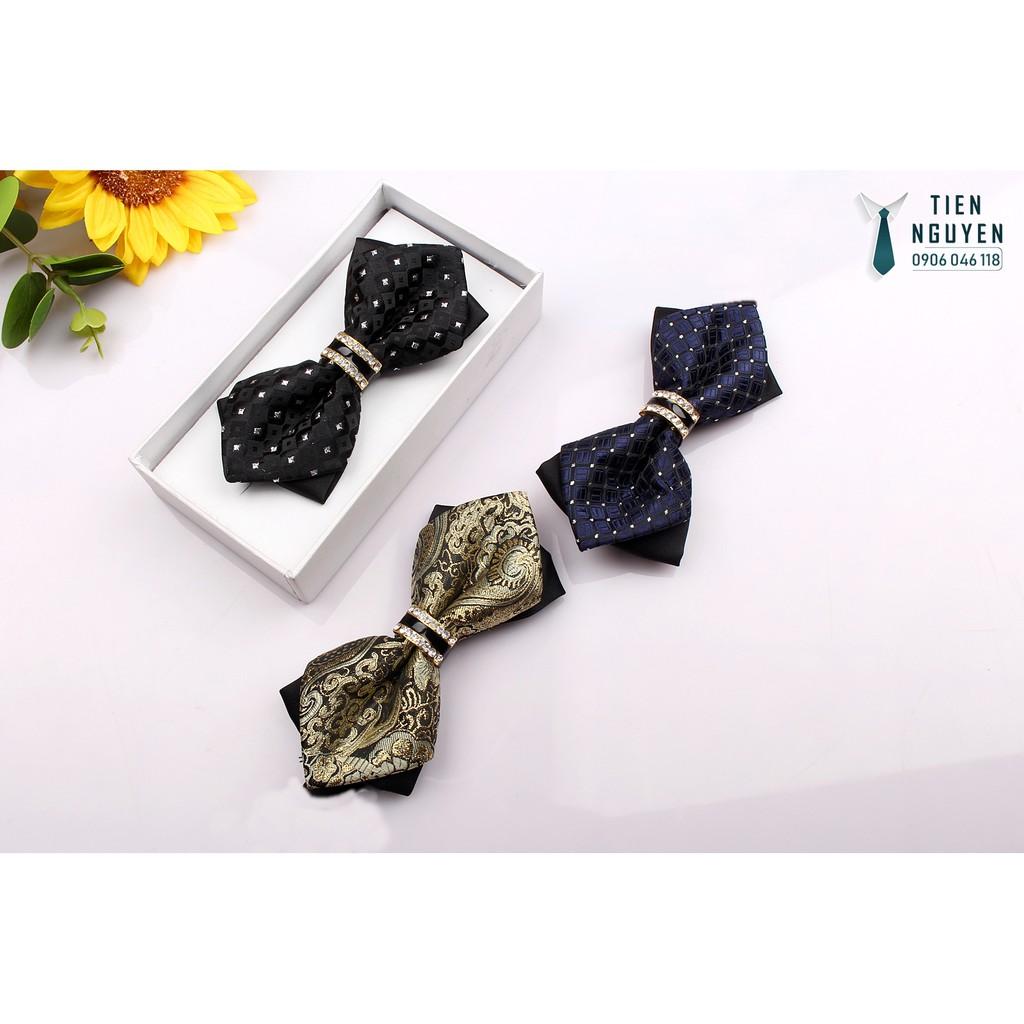 ✨Nơ đeo cổ nam chú rể, nơ cánh nhọn đính đá cao cấp Full box