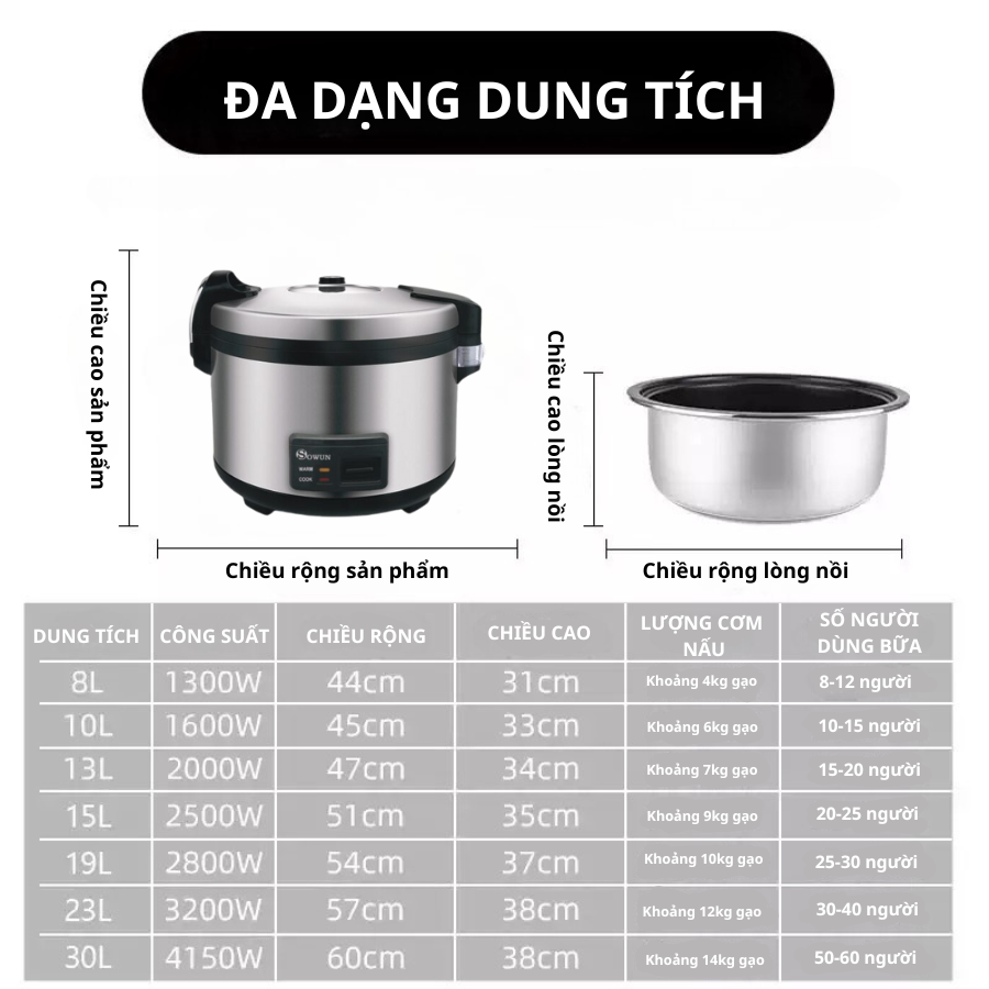 NỒI CƠM ĐIỆN SOWUN SW 69100S (NỒI CƠM CÔNG NGHIỆP) Trong thời đại phát triển như ngày hôm nay, ngày càng nhiều nhà máy, xí nghiệp, công ty hình thành. Một chiếc nồi cơm điện