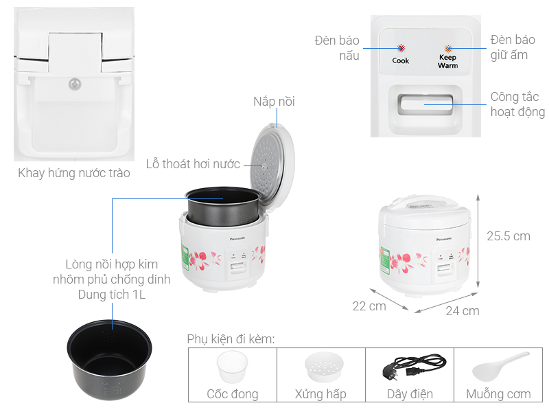 • Phụ kiện đi kèm: xửng hấp, muỗng cơm và cốc đong.