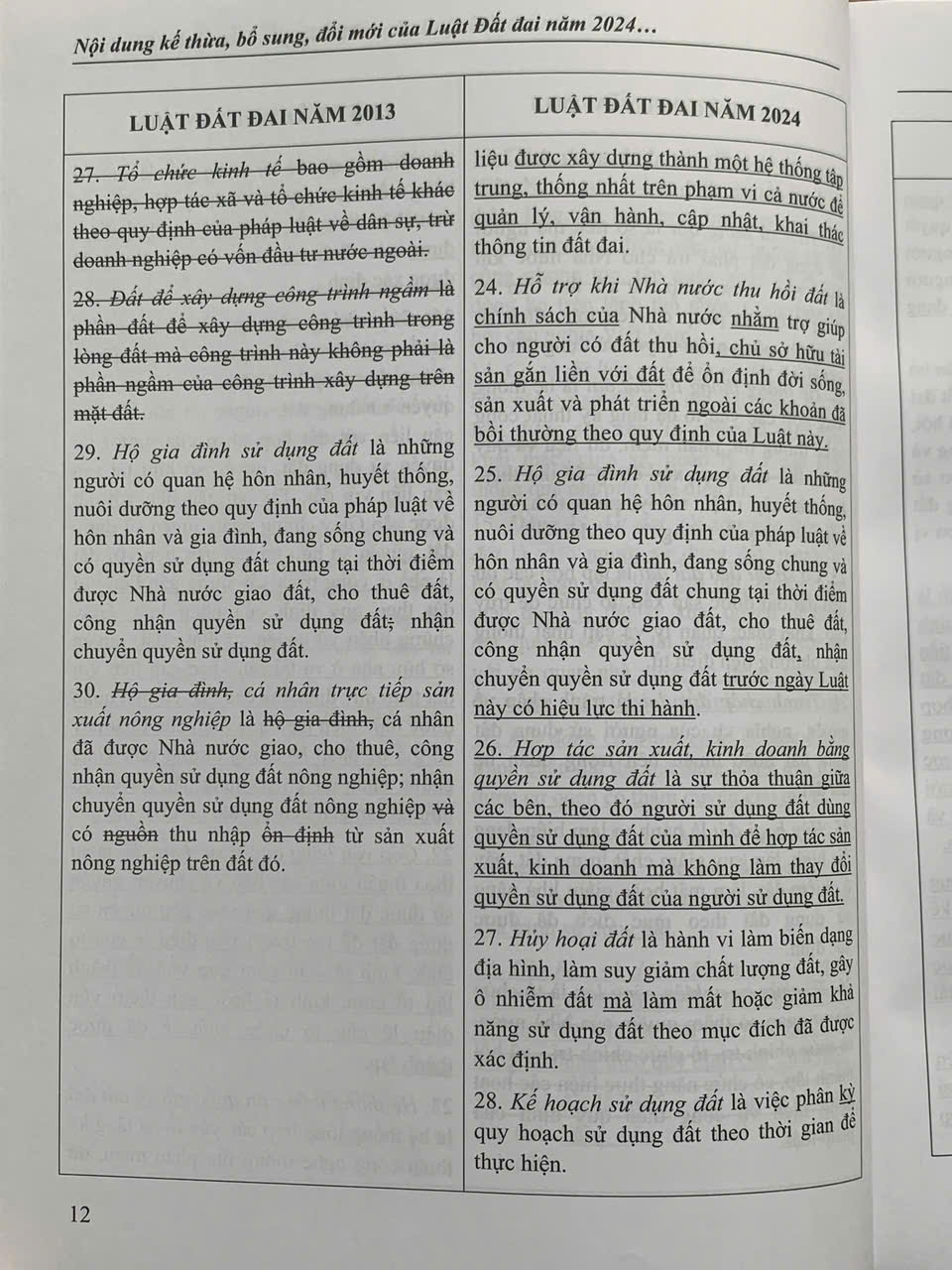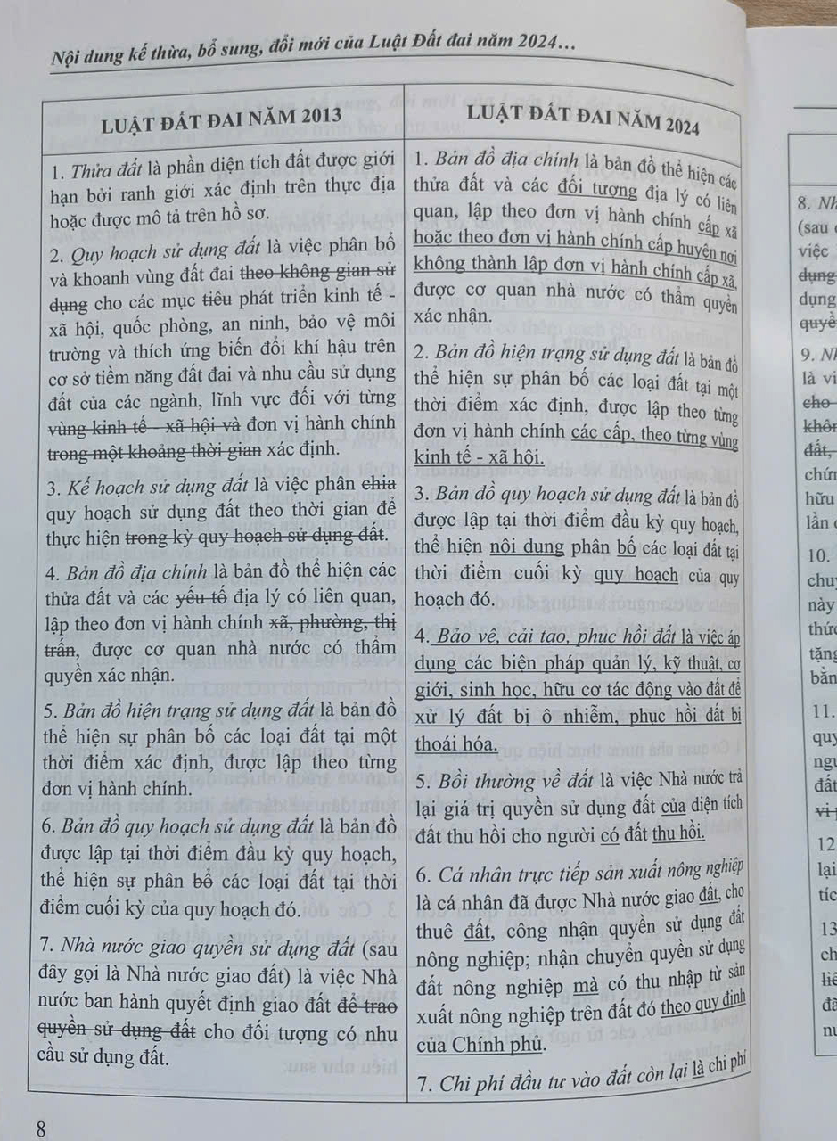Để thuận tiện trong quá trình theo dõi, nghiên cứu, triển khai thi hành Luật, cuốn sách “Nội dung kế thừa, bổ sung, đổi mới của Luật Đất đai năm 2024 so với Luật Đất đai năm 2013” được trình bày như sau: