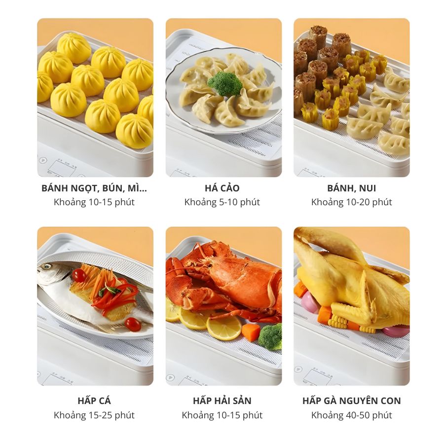 - Đa chức năng: Nồi có thể sử dụng để hấp nhiều loại thực phẩm khác nhau như thịt, cá, rau củ, hải sản,... Ngoài ra, nồi còn có thể dùng để khử trùng bình sữa, dụng cụ y tế và cất giữ đồ ăn tránh ruồi muỗi.