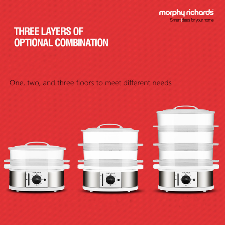 - Nồi hấp thực phẩm 3 tầng Morphy Richards MR1148 có thiết kế thời trang và tiện dụng, được tích hợp nhiều chức năng, cho bạn hấp được các loại thức ăn khác nhau mà không mất nhiều thời gian và công sức nấu nướng.