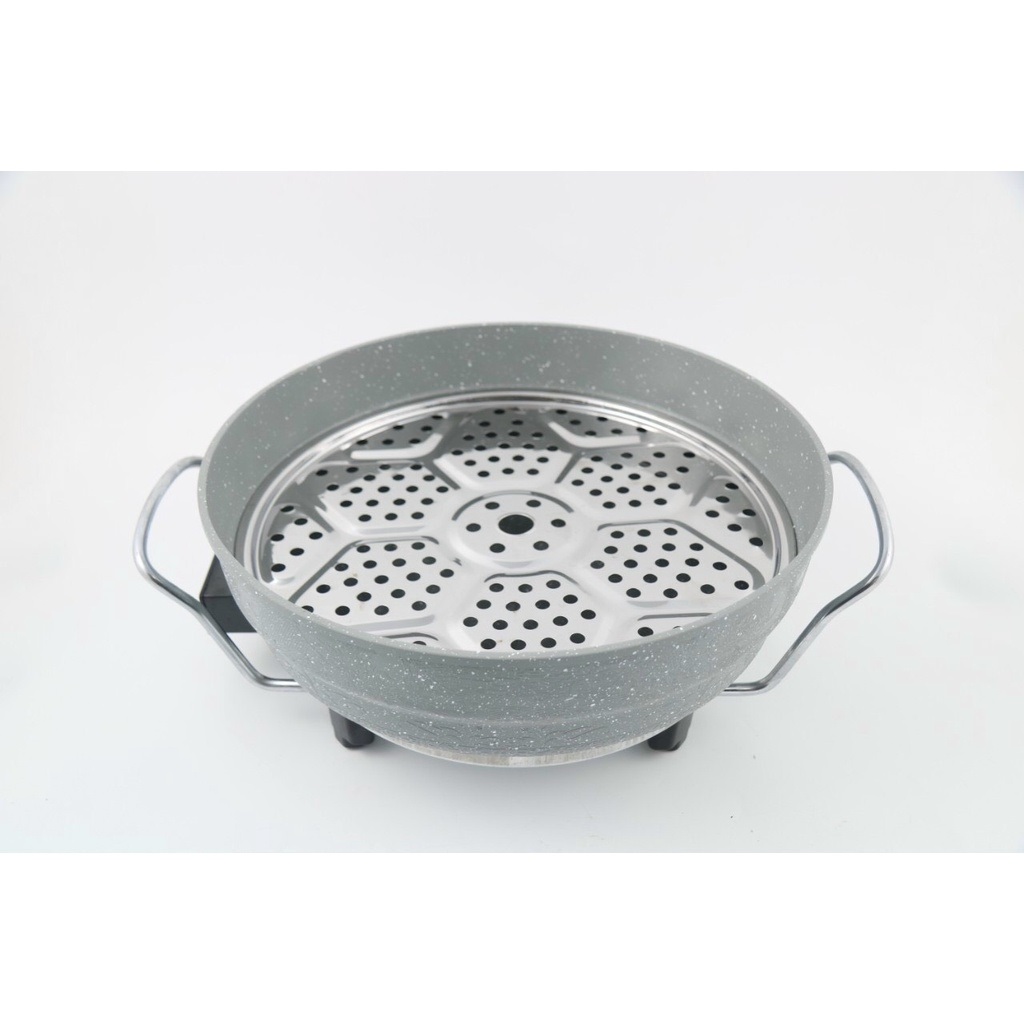 2 trong 1 gồm 2 lòng hợp kim phủ chống dính gốm Ceramic (lòng nướng bằng hơi nước và lòng nồi lẩu ) với 9 chức năng nấu (nấu lẩu, nướng, nướng bằng hơi nước,