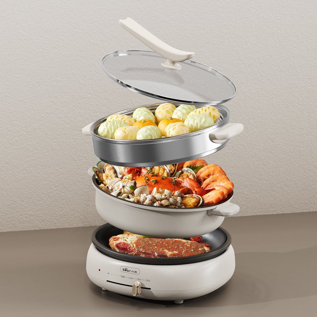 Nồi lẩu điện siêu đa năng 3 IN 1 Bear DZG-C40W2 (LẨU - NƯỚNG - HẤP)