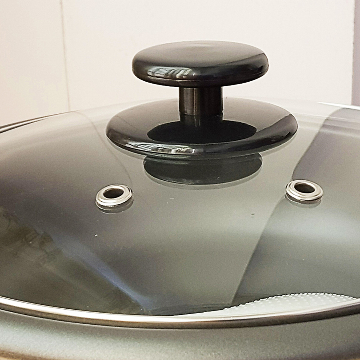 Nắp kính thủy tinh trong suốt, có lỗ thoát hơi Chảo được trang bị nắp nồi bằng thủy tinh trong suốt giúp dễ dàng quan sát thực phẩm trong quá trình nấu và thuận tiện