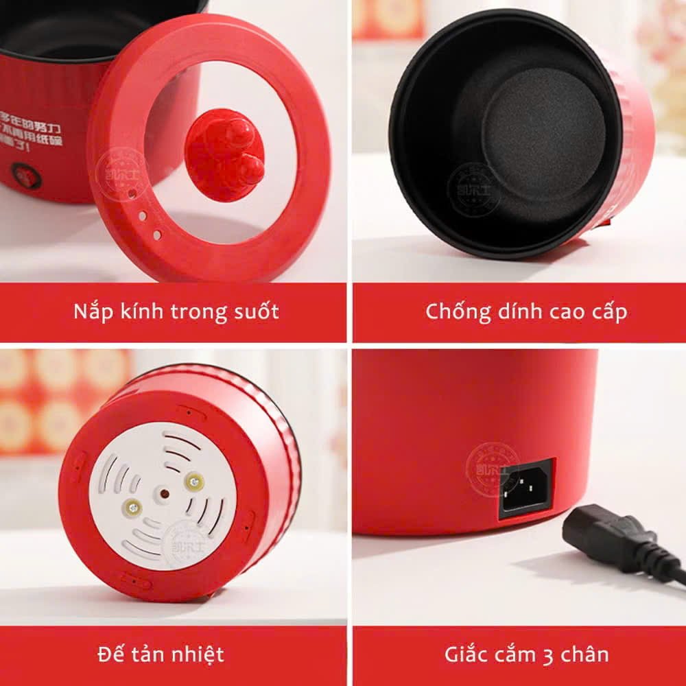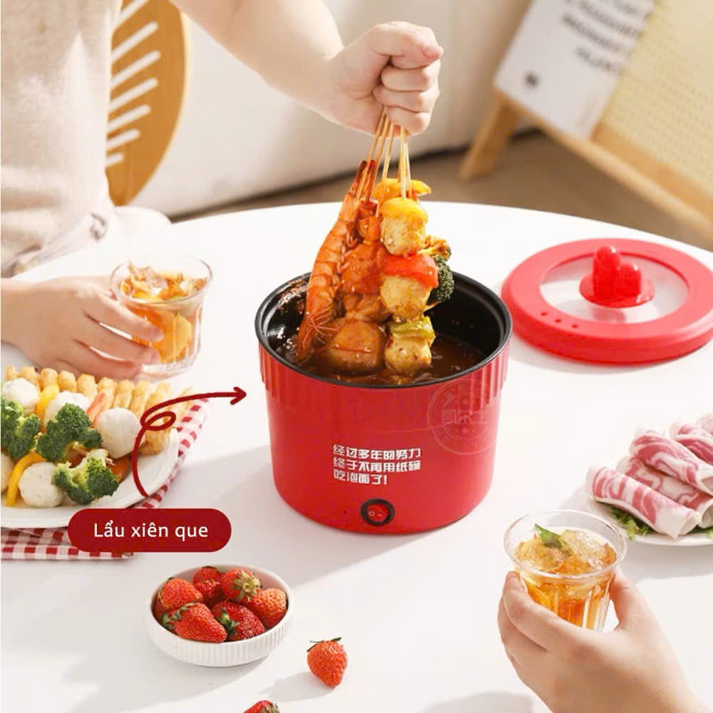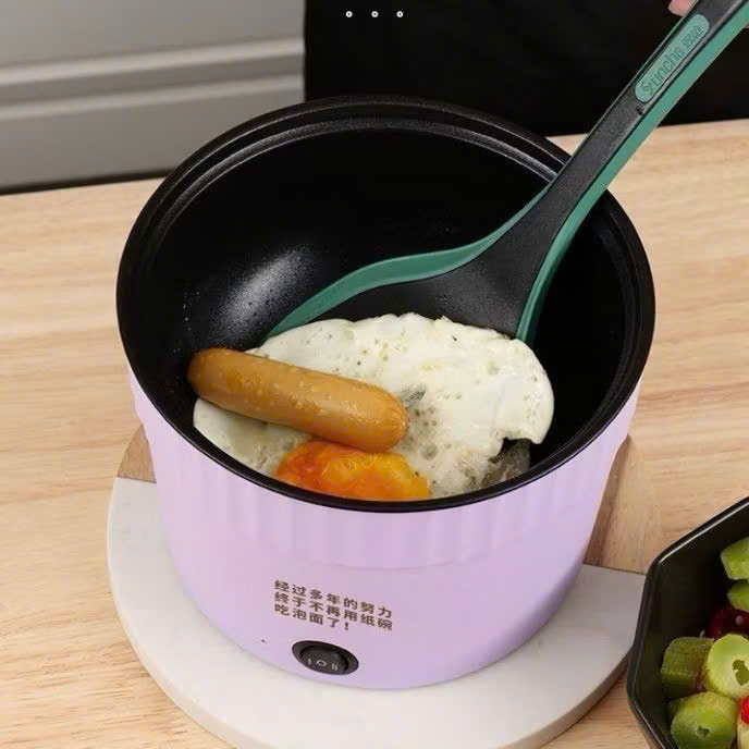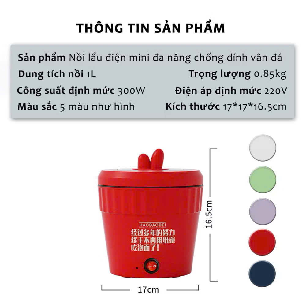 Nồi Lẩu Điện Mini Đa Năng 1.5L, Ca Nấu Mì, Cốc Ăn Lẩu Cô Đơn 500W, Chống Dính Vân Đá