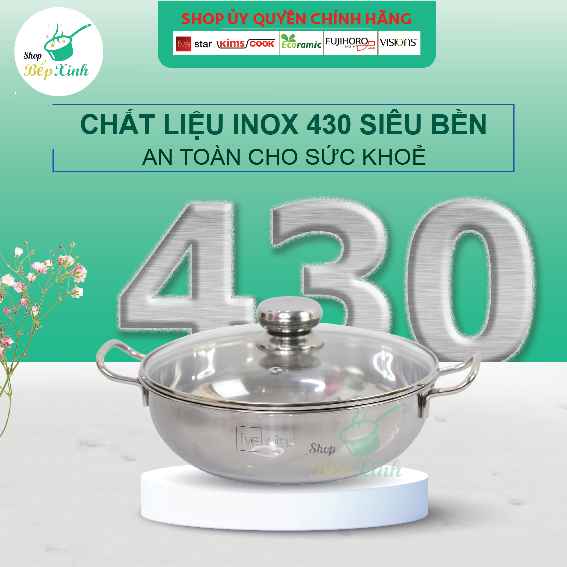 – Thiết kế theo công nghệ hiện đại, kiểu dáng sang trọng,. Sản phẩm bằng inox cao cấp 430, hấp thu nhiệt nhanh – bắt từ tốt.