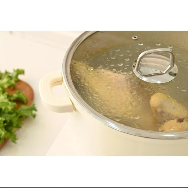 Đáy 3 lớp truyền nhiệt nhanh – giúp nấu chín đều, tiết kiệm thời gian Vung kính chịu nhiệt có lỗ thoát hơi – tiện theo dõi món ăn không cần mở nắp Chất liệu