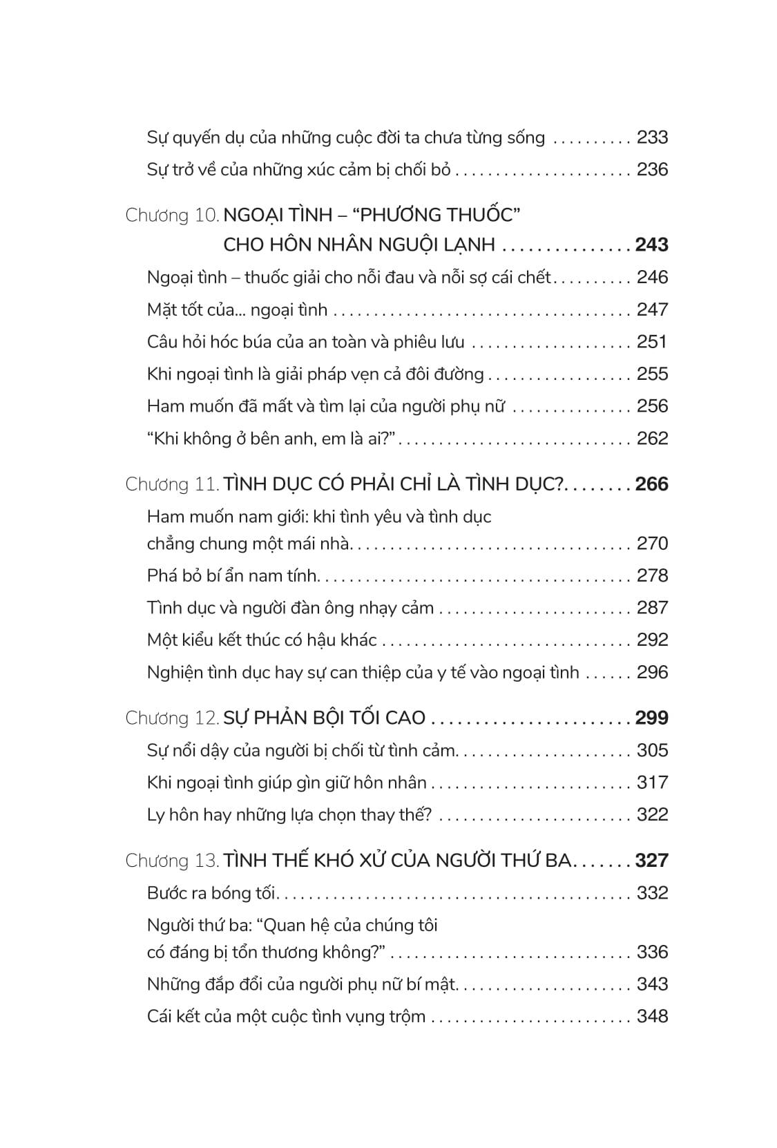 Ngày nay một cuộc đối thoại về các mối quan hệ bất chính dễ mang tính chia cắt, phán xét, và có lối suy nghĩ thiển cận. Xét dưới góc một nền văn hóa, chúng ta chưa khi nào cởi mở về tình dục hơn ngày nay, nhưng sự bội bạc vẫn còn chìm khuất đằng sau một đám mây của sự hổ thẹn và giấu giếm. Tôi hy vọng quyển sách này sẽ giúp xua đi sự im lặng ấy và mở ra một lối suy nghĩ và diễn đạt mới mẻ cho một trong những điều xưa cổ nhất trong cuộc sống của con người. Rất nhiều người đã viết ra cách ngăn ngừa và chữa lành sau khi sự đã xảy ra; nhưng ít ai viết về ý nghĩa và động cơ của các mối quan hệ bất chính. Càng ít hơn nữa những người nói về những điều mà chúng ta có thể học được từ các mối quan hệ và làm thế nào để kiến thức ấy có thể biến đổi và hoàn thiện các mối quan hệ của chúng ta.