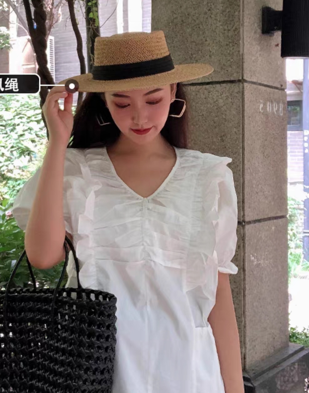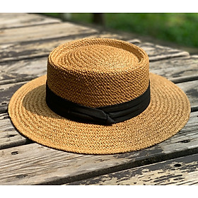 Mũ cói rơm vành phẳng nữ mùa hè phiên bản Hàn Quốc chống nắng UV cho kỳ nghỉ Nón đi biển Paris thời trang hàng đầu Pháp Chất liệu cói