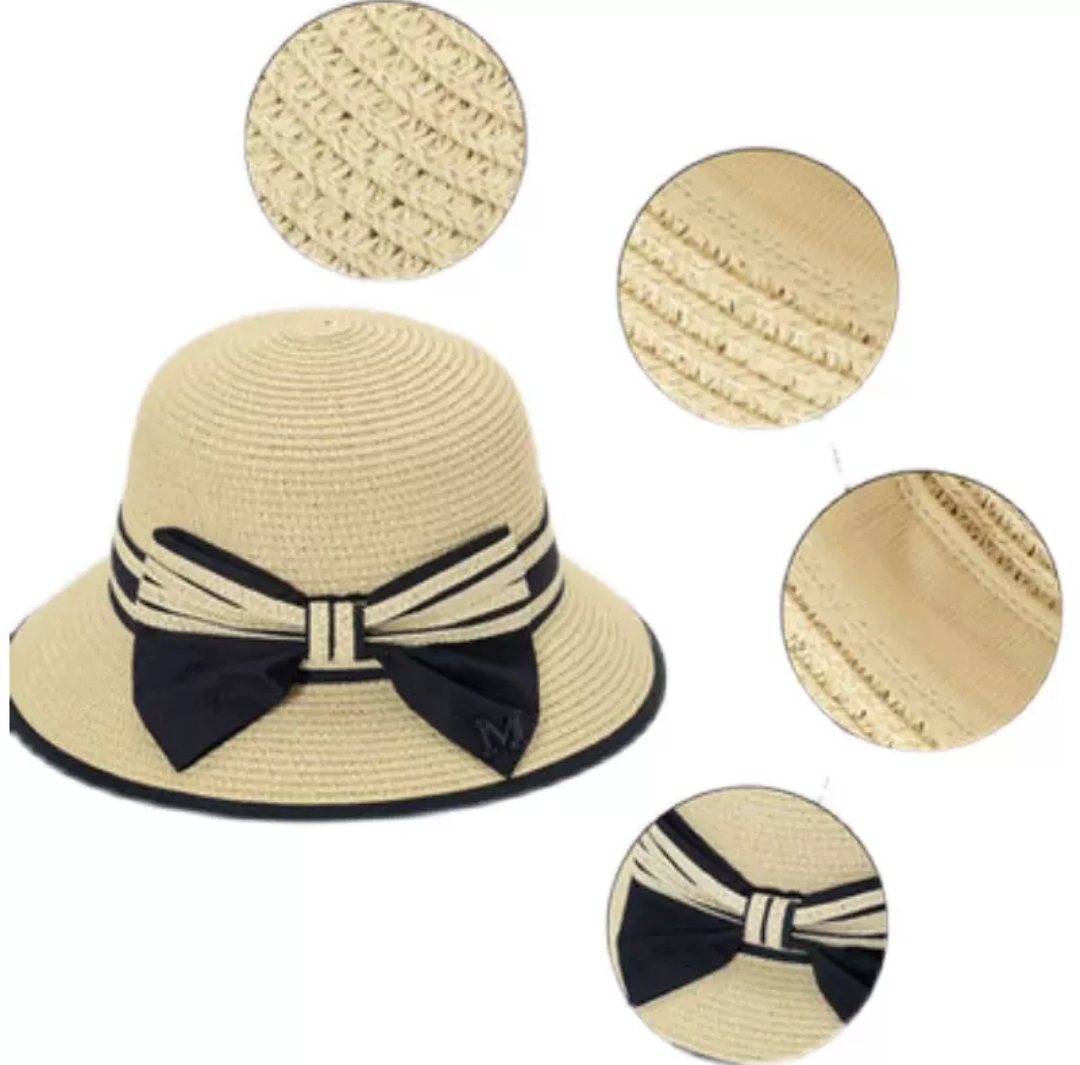 Mũ cói rơm vành phẳng nữ mùa hè phiên bản Hàn Quốc chống nắng UV cho kỳ nghỉ Nón đi biển Paris thời trang hàng đầu Pháp Chất liệu cói