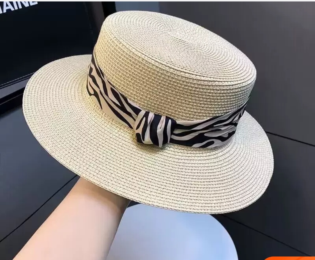 ✨Nón mũ rộng vành nhỏ chất liệu cói mũ rộng vành đi biển phối đai vân sọc Zebra mẫu mới thời trang Hàn Quốc dona24082505
