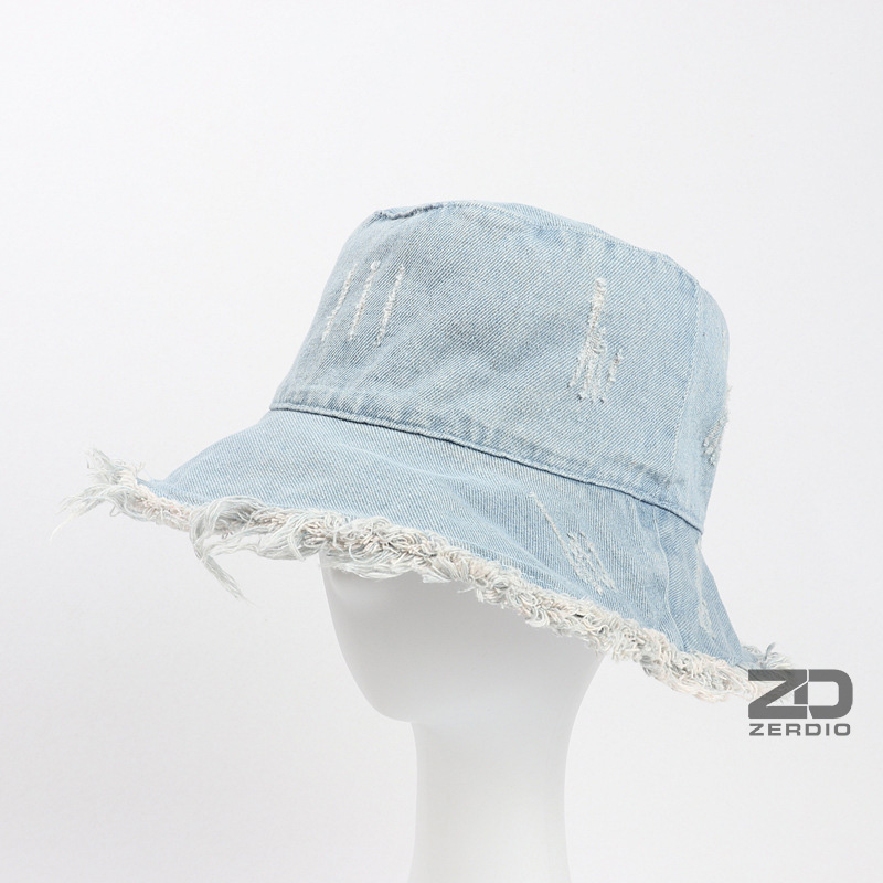 Nón vành tròn, Mũ bucket jean rách nam nữ phong cách cá tính - ZERDIO