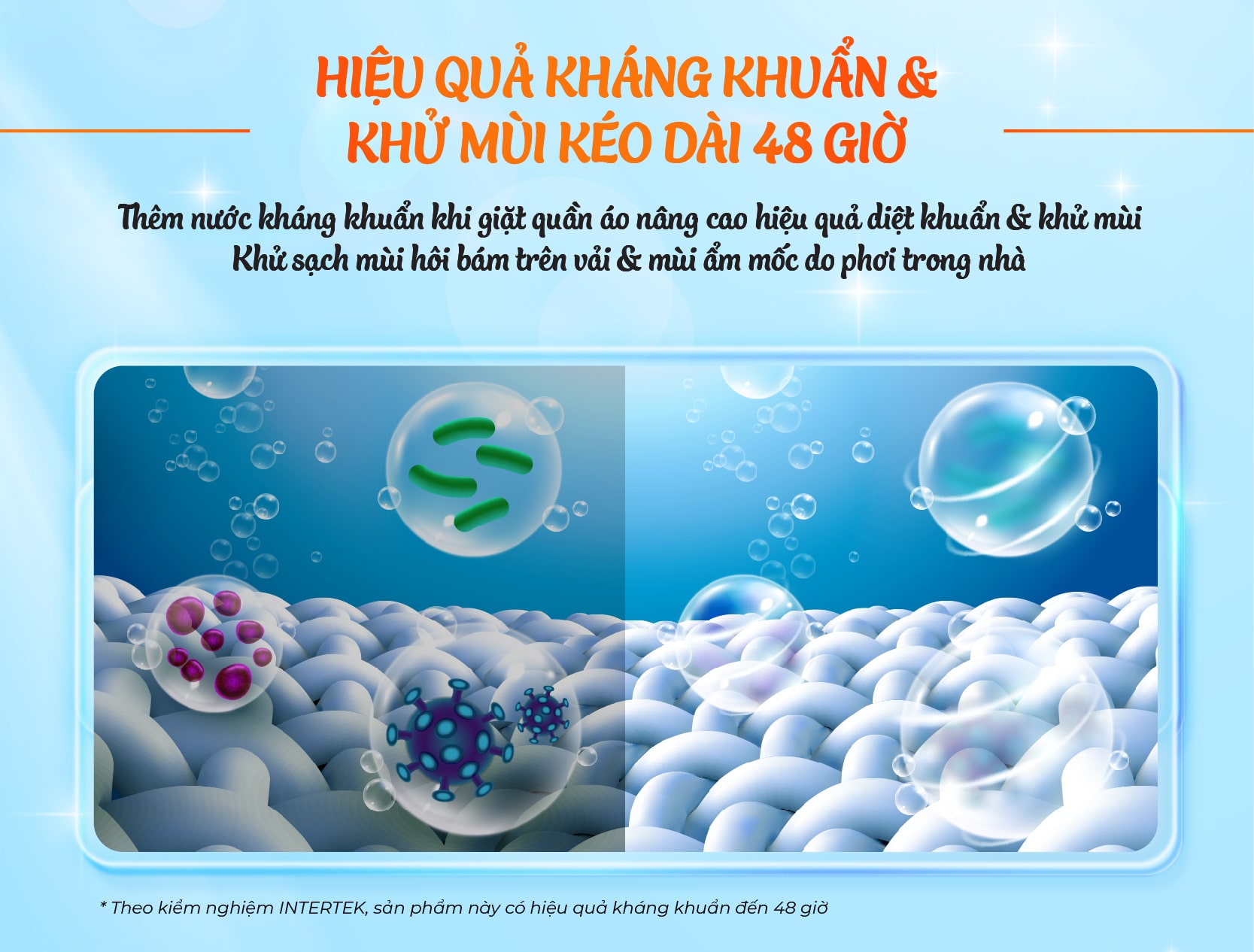 - Hiệu quả kháng khuẩn & khử mùi kéo dài 48 giờ