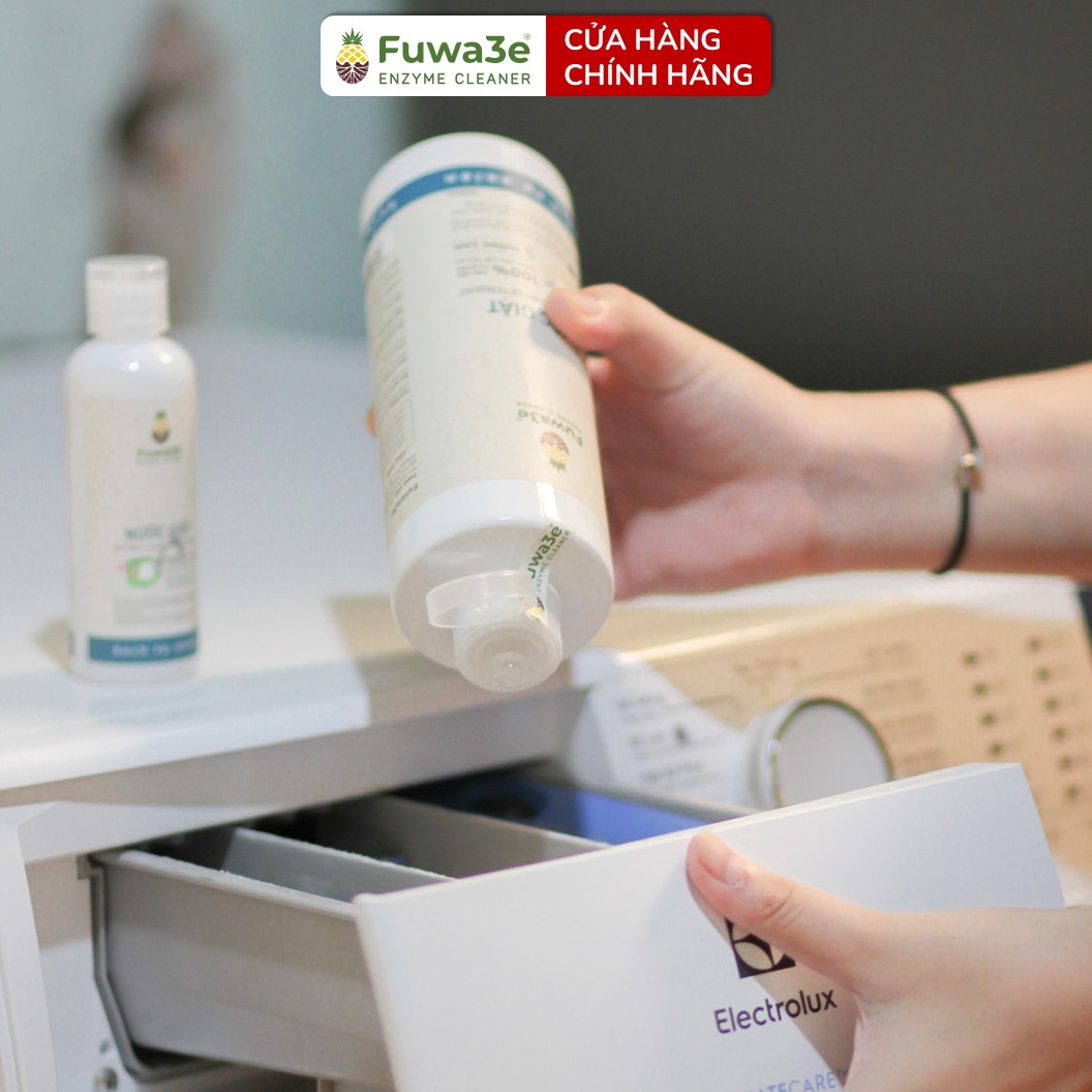 Nước giặt hữu cơ Fuwa3e ứng dụng công nghệ lên men vỏ dứa với Enzyme Bromelain có trong dứa có hoạt tính làm tan và tẩy sạch các vết bẩn. Sản phẩm không chứa hoá chất độc hại, chất tẩy trắng và hương liệu nên phù hợp giặt đồ cho trẻ sơ sinh, đồ lót, khăn. Sản phẩn đạt chuẩn không kích ứng da được kiểm định bởi Quatest 2. Một đặc điểm nổi bật của sản phẩm là nước thải sau khi giặt có thể dùng trực tiếp để tưới cây, các enzyme trong nước thải sẽ làm sạch đất và cung cấp thêm lợi khuẩn cho cây trồng. Ưu điểm vượt trội
