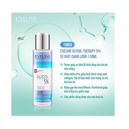 ✨Nước hoa hồng Eveline Glycol Therapy 5% se khít chân lông 110ml_[Tặng kèm mặt nạ Hàn Quốc cao cấp]