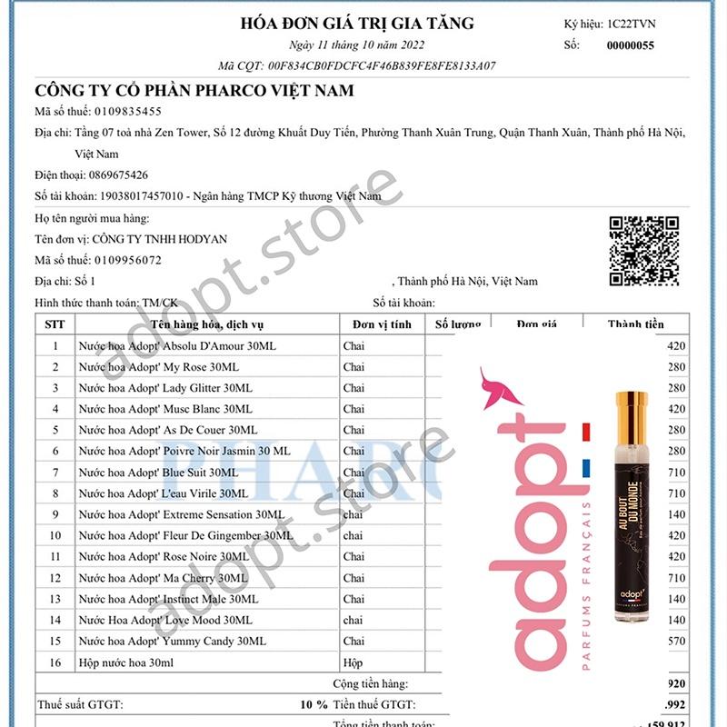 Mua tại TiktokAdopt' - Thương hiệu nước hoa chính hãng đến từ Pháp. Công ty TNHH Hodyan tự hào là nhà phân phối hợp pháp Adopt' tại Việt Nam Thông tin sản phẩm: