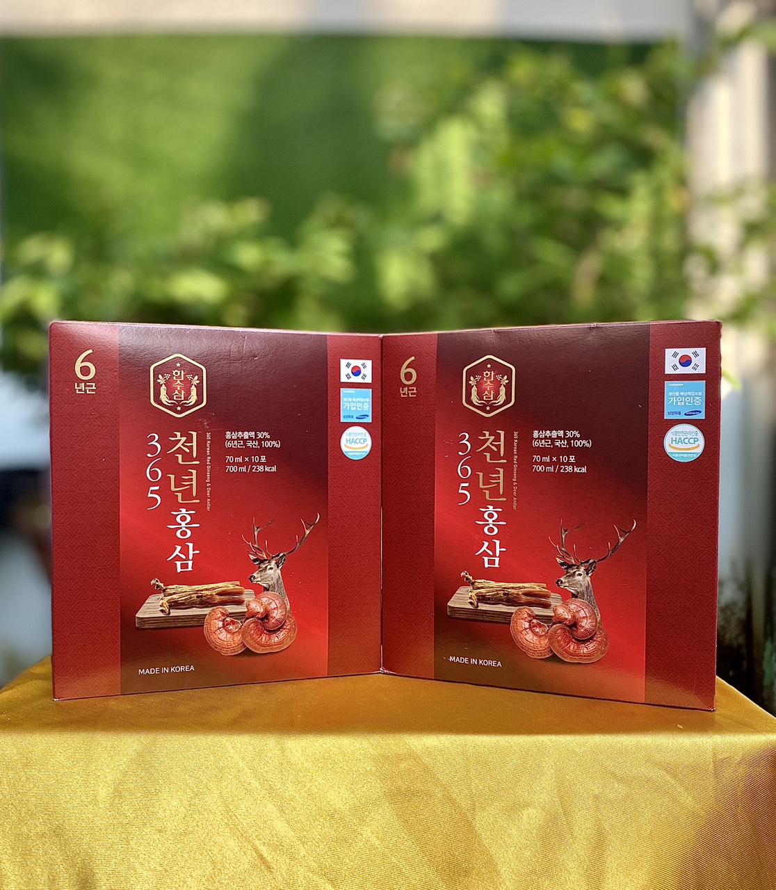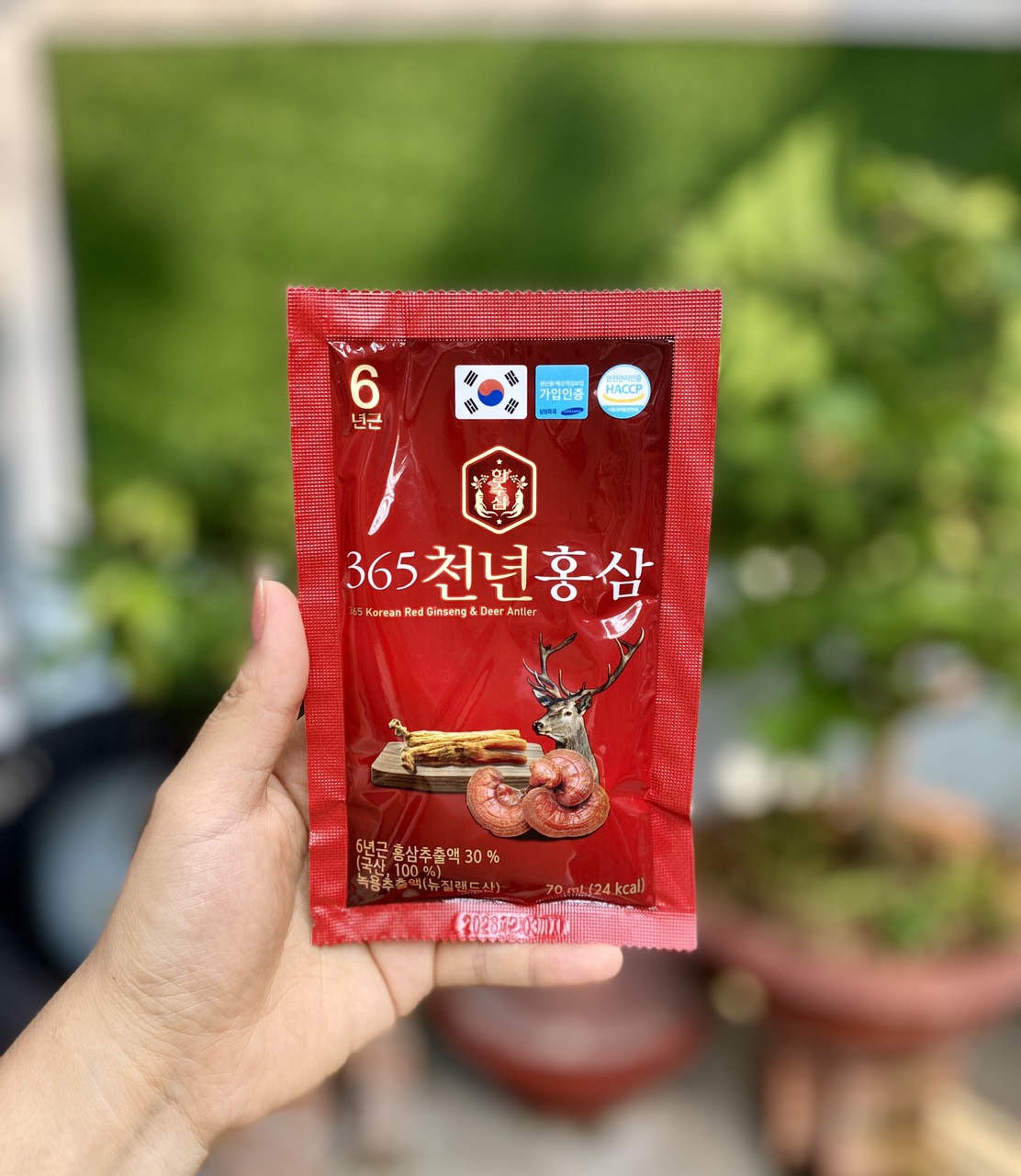 ̂̀ ̛́ ̉ ̛̀ ̂ ̂ Nước hồng sâm Nhung hươu linh chi 365 hộp 70ml * 60 gói Thành phần: - Chiết xuất hồng sâm 30% - Chiết xuất nhung hươu -