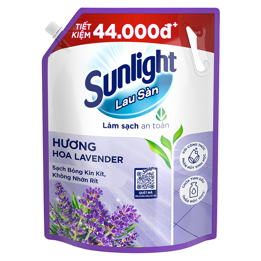 Mua tại TiktokSUNLIGHT NƯỚC LAU SÀN TINH DẦU THẢO MỘC - HƯƠNG HOA LAVENDER - CHO SÀN SẠCH THƠM TINH TẾ Nước lau sàn Sunlight hương hoa Lavender mới, với tinh dầu Lavender 100% và mùi hương thư thái lấy cảm hứng từ những cánh đồng hoa Lavender vùng Provence nước Pháp, giúp thanh lọc không gian sống, mang lại tổ ấm trong lành và ngát hương thơm thư thái dễ chịu. Hương hoa Lavender là mùi hương đang "sốt" được yêu thích ở rất nhiều sản phẩm, nay đã có ở nước lau sàn Sunlight. ƯU ĐIỂM NỔI BẬT: