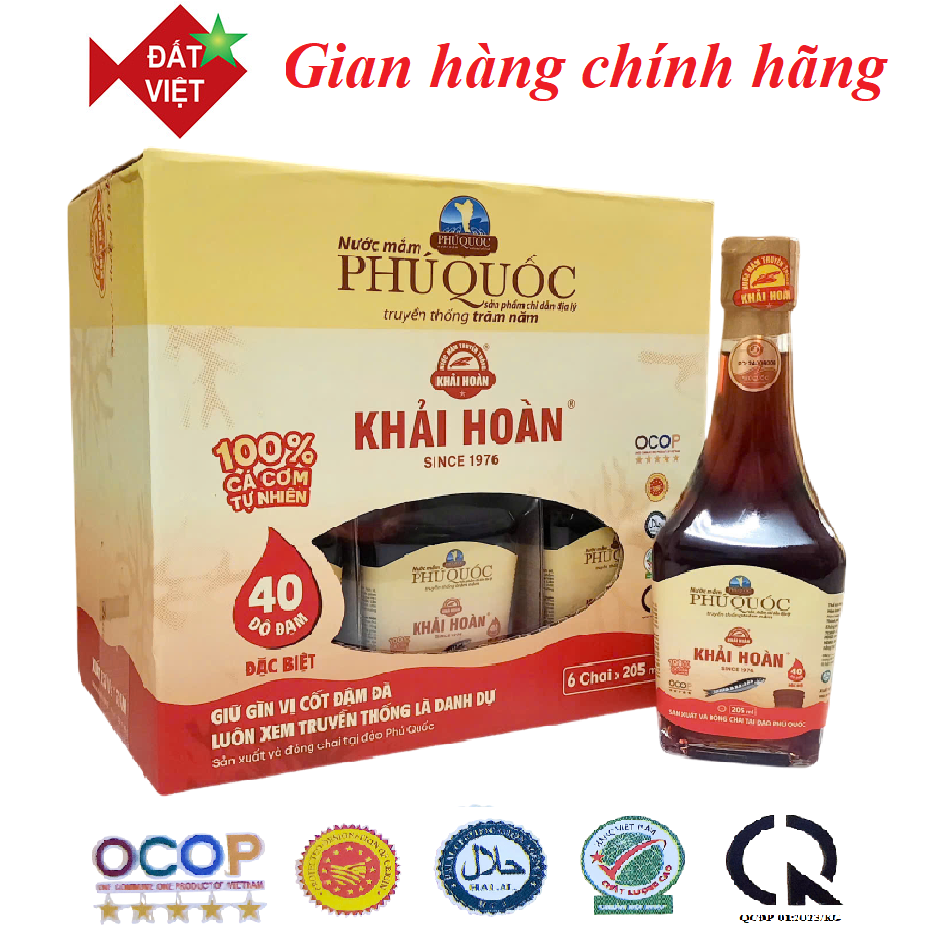 ✨Nước mắm Khải Hoàn Phú Quốc 40-43 độ đạm thùng 6 chai thủy tinh 205ml
