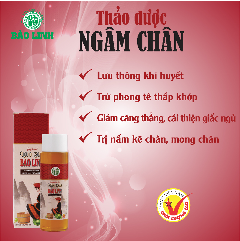 DUNG DỊCH THẢO DƯỢC NGÂM CHÂN BẢO LINH 200ml và 70ml CÔNG DỤNG: - Dung dịch ngâm chân thảo dược Bảo Linh có tác dụng khu phong, tán hàn, ấm can phế, tỳ, vị, hỗ