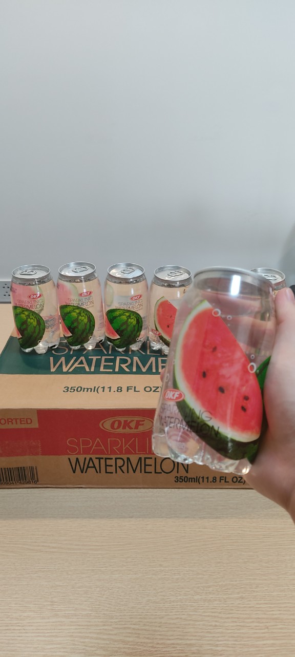Tên sản phẩm: Nước ngọt OKF sparkling vị dưa hấu - Đây là sản phẩm của Hàn Quốc - Nước giải khát có ga hương dưa hấu làm từ nước ép dưa hấu lý tưởng