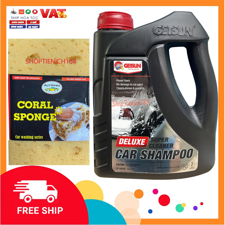 Tên sản phẩm : Nước rửa ô tô xe máy DELUXE Getsun 2L cao cấp Tính năng : Tẩy rửa các vết bẩn, dưỡng lớp sơn xe Thành phần : Chất hoạt động bề mặt, chất tạo đặc, nước khử khoáng… Hướng dẫn sử dụng : Pha 100ml nước rửa xe với 1l nước sạch, xịt nước toàn thân xe, sau đó dùng khăn nhúng vào hỗn hợp nước vừa pha và thực hiện các thao tác rửa xe, cuối cùng xả nước và dùng khăn sạch lau khô xe.