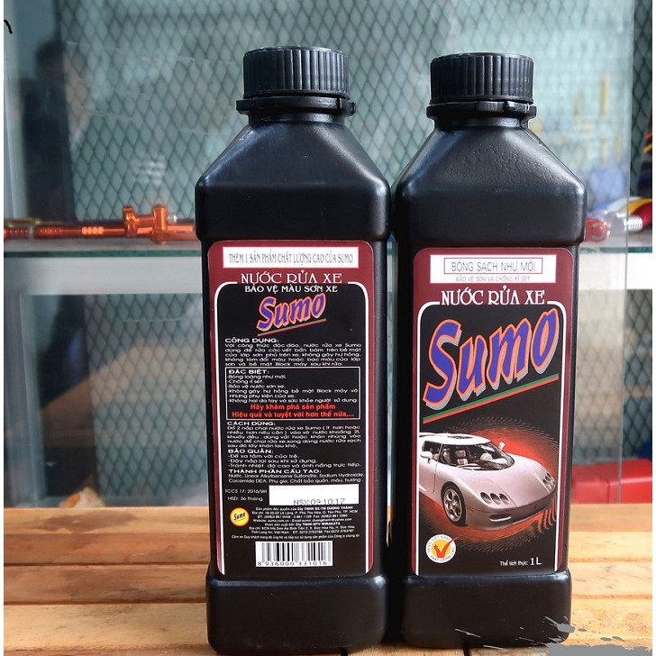Nước Rửa Xe Sumo 1000 ml Mới Chai Vuông Rửa Xe Chuyên Dụng Bảo Vệ Màu Sơn Chăm Sóc Xe Ô tô Mô tô Tay Ga Gắn Máy Bóng Loáng Như Mới Chống Gỉ Sét Hàng Việt Nam Chất Lượng Cao công dụng: Với công thức độc đáo, nước rửa xe SUMO dùng để rửa các vết bẩn bám trên bề mặ của lớp sơn phủ trên xe, không gây hư hỏng, không làm đổi màu hoặc bạc màu của lớp sơn và bề mặt Block máy sau khi rửa.